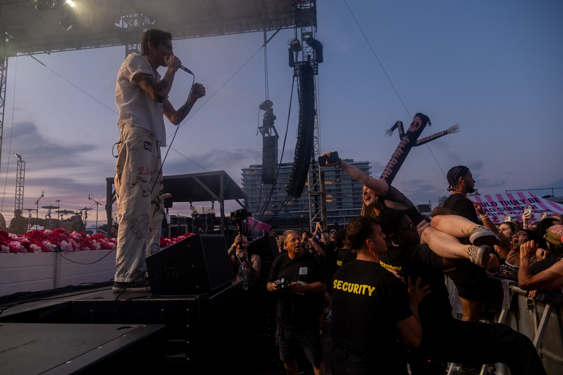My first introduction to Mayday Parade was when I was around 6 years old living with an emo 13 year old sister. They stayed consistent in my music rotation as I grew older and eventually I got to see them live for the first time in 2022 in Sayreville New Jersey. After seeing them absolutely nail their set, you could imagine how excited I was when they were one of the headliners for Sad Summer Fest 2024. After showing up to Asbury Park (for the second time), it was clear how many people showed up to see Mayday perform. As the night went on, the audience was buzzing with excitement for the band to take the stage. From the second they walked on their daisy-covered stage with their iconic background and "Summer Loving" by Olivia Newton John and John Travolta starting playing, the pit became alive. This show only solidified for me how iconic this band truly is in the pop punk community. Lead singer, Derek Sanders, showcased his love and appreciation for his dedicated fans between belting his heart out during songs. I chose to showcase my love for Mayday by crowd surfing for the first time during Anywhere But Here off of their timeless 2009 album. With songs such as "Jersey," "Oh Well Oh Well," and "Jamie All Over," their setlist was absolutely stacked. All in all, I truly enjoyed watching Mayday Parade do what they do best and I hope to see another appearance from them during next year’s Sad Summer Fest!